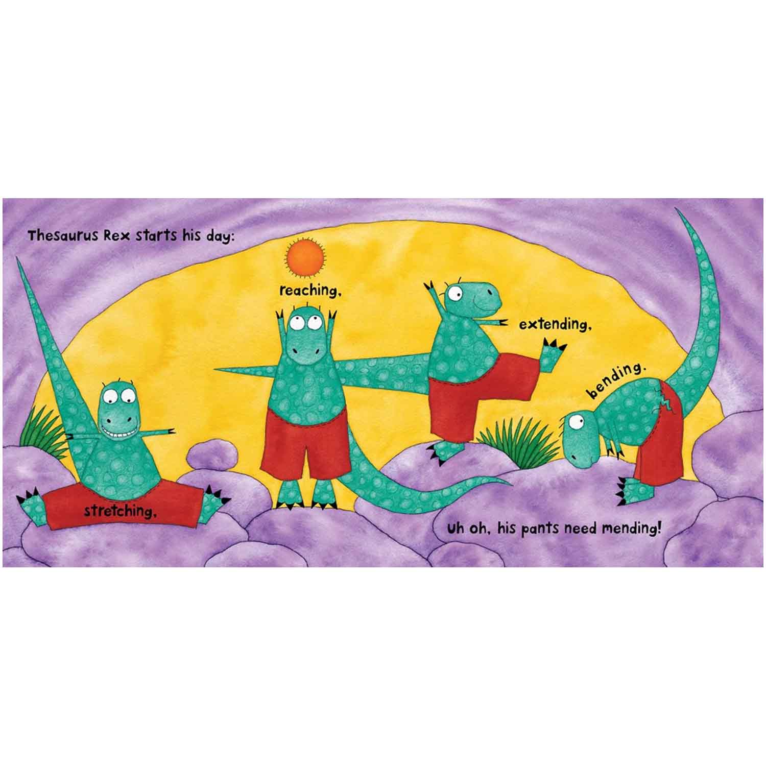 This playful dinosaur will slither, skid, slide and glide his way into children s hearts! Encourage children to explore synonyms with the lovably cheeky Thesaurus Rex, who has an irresistible way with words. Action-verb and noun synonyms feature throughout Laya Steinberg's energetic text which, paired with award-winning Debbie Harter's vibrant watercolors, will engage boys and girls alike. The alliteration, repetition and rhyme featured in this delightful book will also help to foster speaking and listening skills.