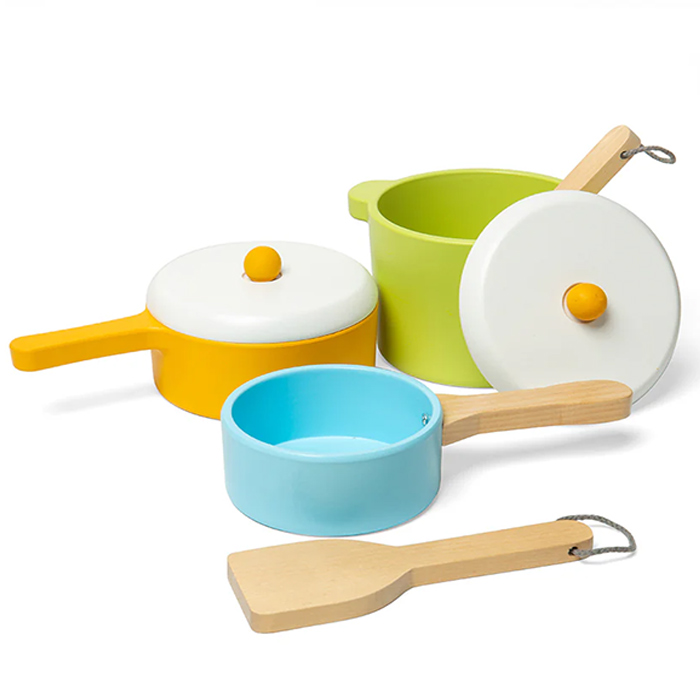 Calling all little chefs-in-training! The wooden pots and pans set engages young children in a fun and educational way. Let children's imaginations run wild as they learn about cooking and kitchen safety through interactive play. This experience will encourage them to try new foods and foster creative thinking, fine motor skills, and valuable life lessons.
