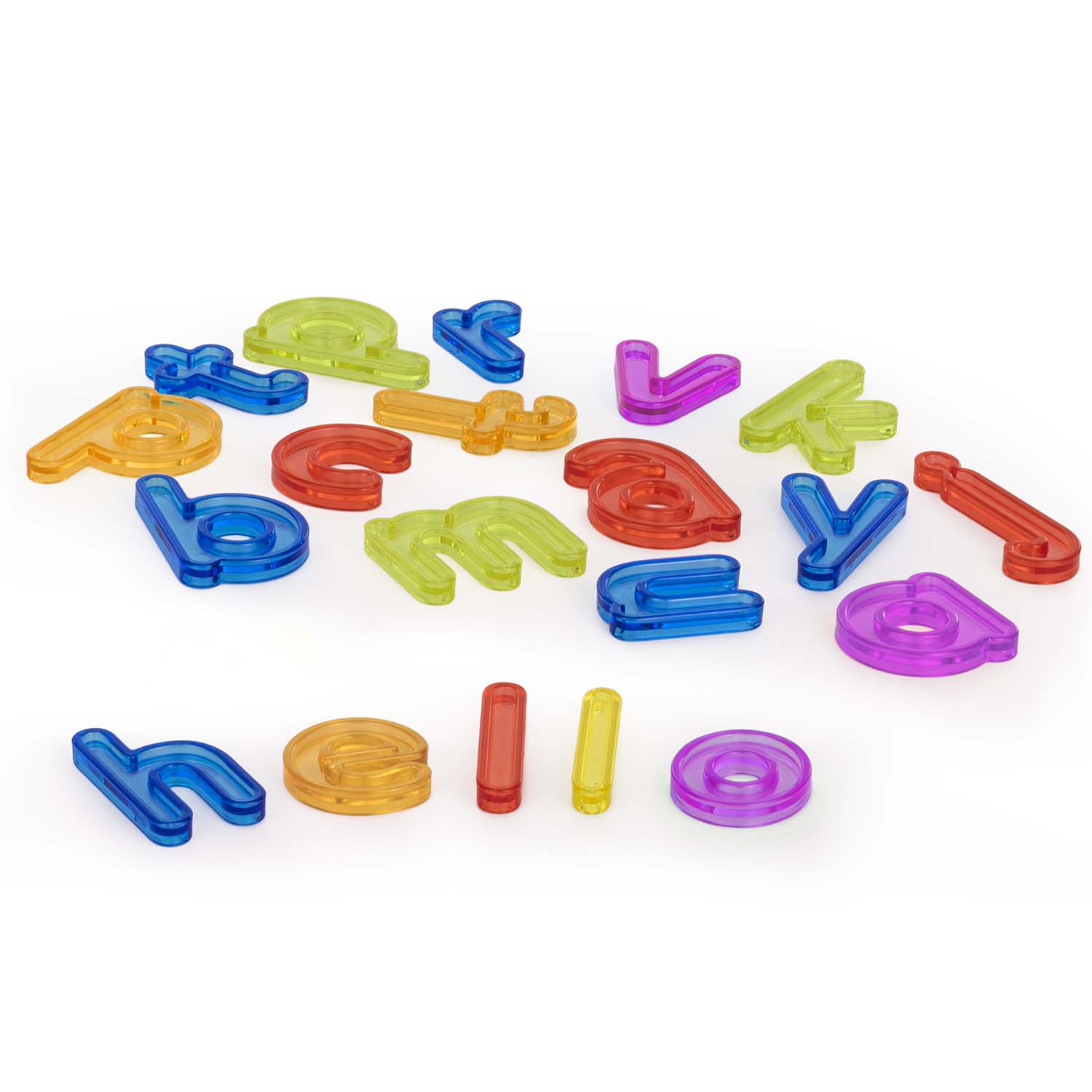 Great for the light table, this translucent lowercase letter set includes 76 pieces in five different colors.