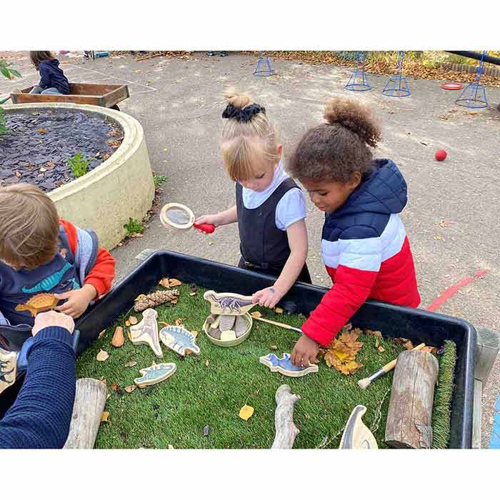 This set of double-sided dinosaurs will not disappoint! One side shows skin tones while the reverse shows the skeleton in simplified form. Ideal for prehistoric small world play.
