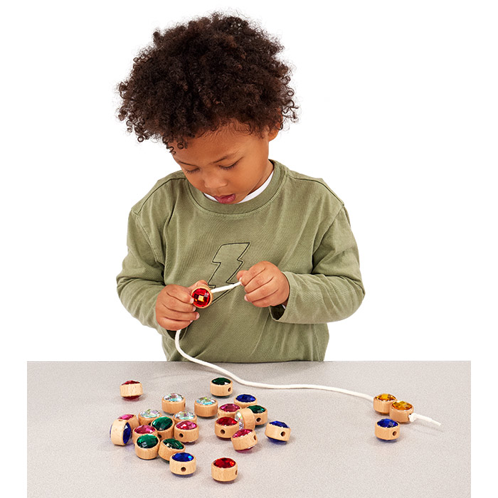 Wooden Lacing Jewels combine tactile engagement with early cognitive skill-building, strengthening fine motor skills and hand–eye coordination through hands-on threading activities. This set includes 36 smooth, durable acrylic-and-beechwood jewels and three laces, supporting sensory play, threading practice, and foundational math concepts in early learning environments.