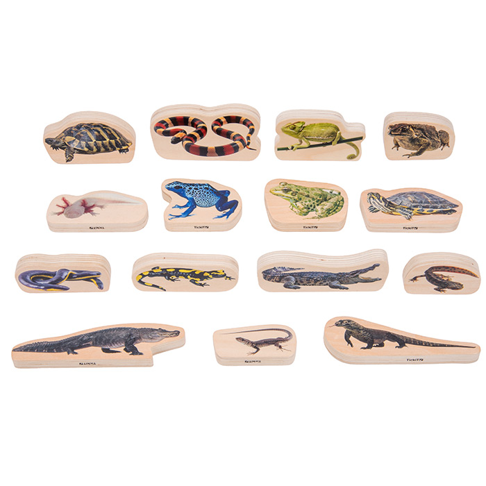 The Wooden Reptile and Amphibian Blocks are perfect for imaginative play or can be integrated into lessons about animals and storytime. The realistic images on the blocks will help children learn the names and characteristics of various reptiles and amphibians. They are also excellent for developing descriptive language skills and discussing environmental issues.