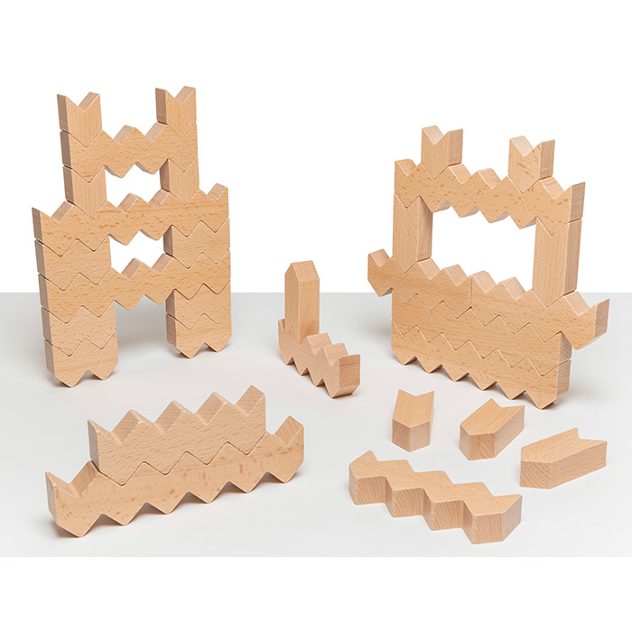 These Zig Zag Block Sets include eco-friendly wooden pieces, including a spacer piece that adds extra height. This set encourages logical reasoning as children explore the best ways to stack and build their creations. The chunky design is perfect for little hands to grip and maneuver easily.